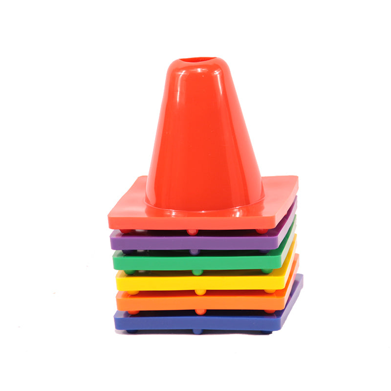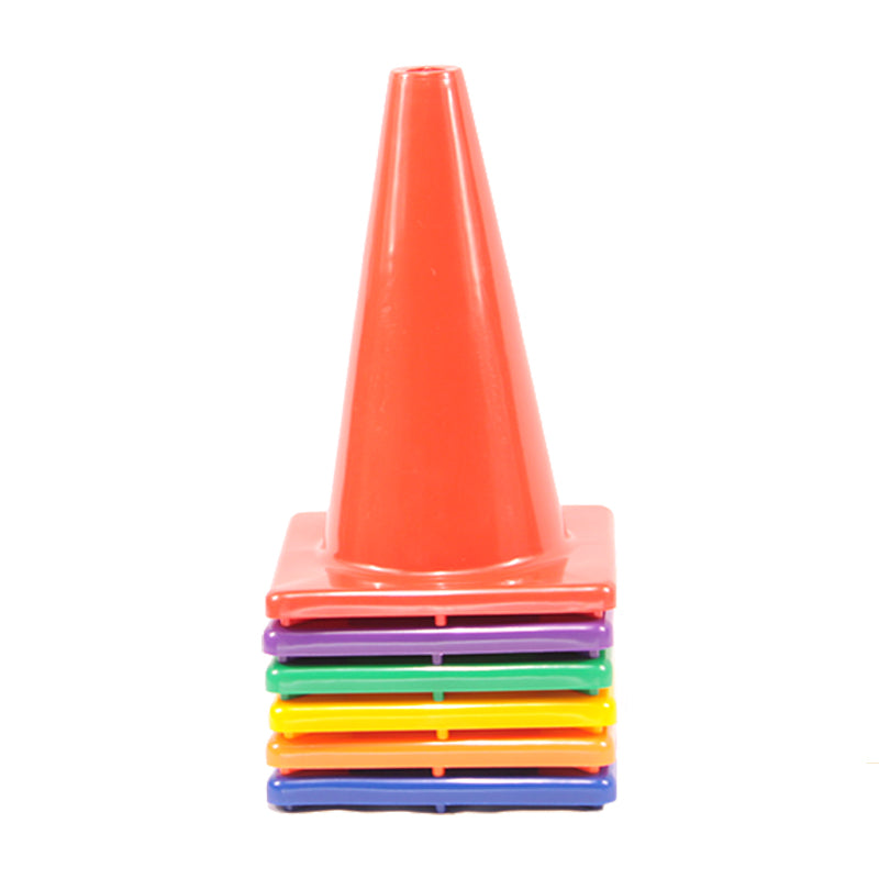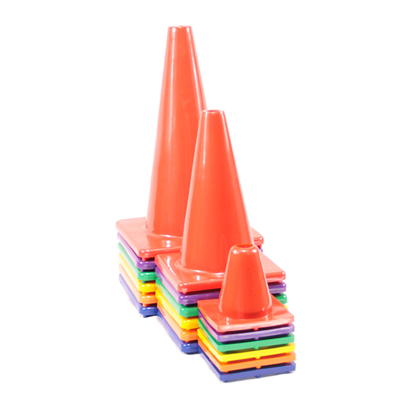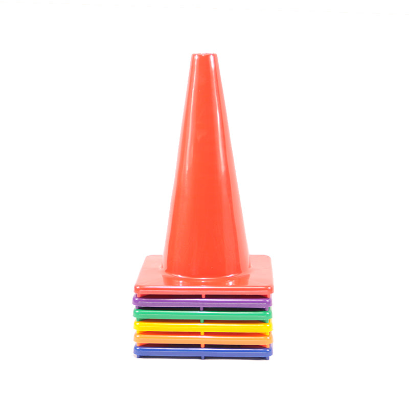 More pliable than other cones, these flexible cones are constructed with thermoplastic that quickly springs back when crushed, keeping the cone intact and students safe on impact. Base includes 8 TPR feet to grip the floor and keep cones in place when lightly hit.