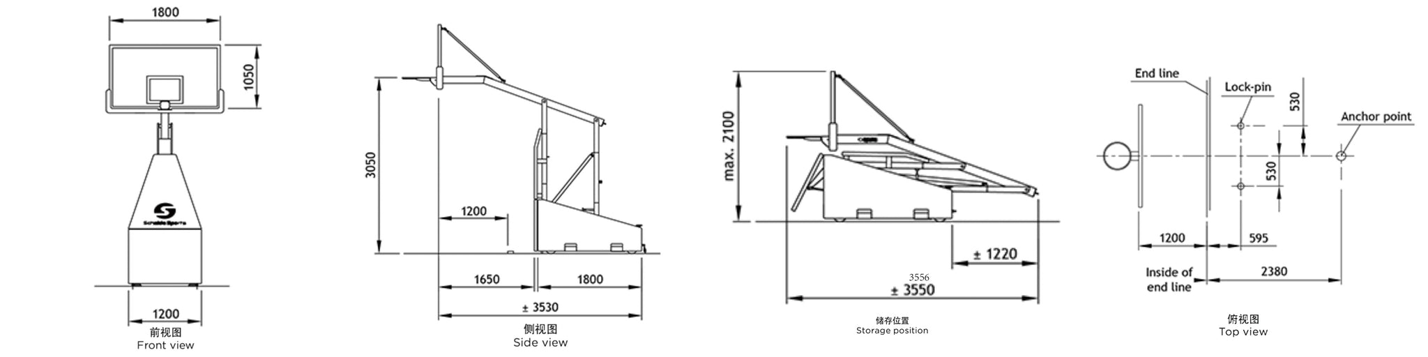 • Economical portable basketball backstop for recreational use, clubs and schools